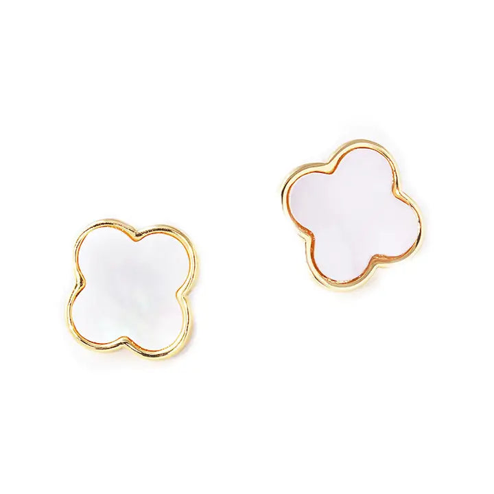 These clover-shaped earrings feature mother of pearl inlay. With a width of .5 inches and lead and nickel compliance, these earrings offer both style and safety. Post back.